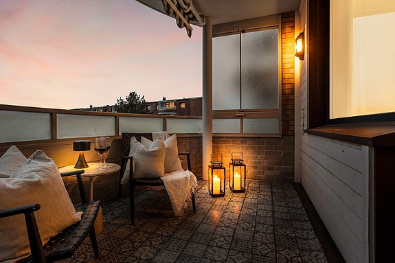 - Vestvendt balkong på 7 kvm. Ettermiddag og kveldssol