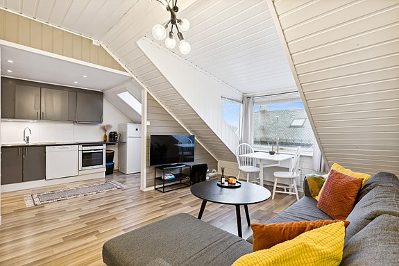 BUD MOTTATT! Lys og godt arealutnyttet loftsleilighet med tilhørende hybelleilighet - Hybel p.t. utleid for kr 4.700 mnd