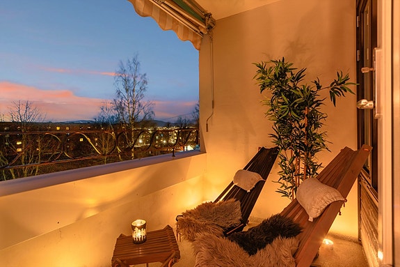 - Balkong på ca. 6m² med ettermiddags og kveldssol