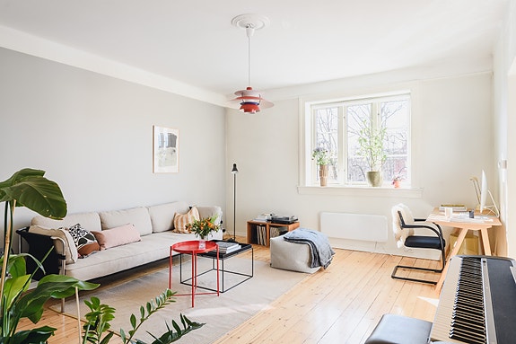 LINDERN HAVEBY: Innholdsrik, lys og luftig 3-roms leilighet med stilren innredning. Peisovn. Idyllisk fellesområde.