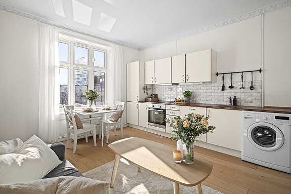 Lys, lekker & gjennomgående 2-R toppleilighet. God takhyøde. Vinduer 2022. Attraktivt område. Lave omk., ingen forkjøp!