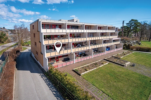 Leiligheten går over ett plan i høy 1. etasje og inneholder: Entré, gang med skyvedørsgarderobe, stort flislagt bad, praktisk bod, 2 soverom med garderobeskap, spisestue (opprinnelig soverom), samt stue med delvis åpen kjøkkenløsning og utgang til sydvest-vendt solrik terrasse.