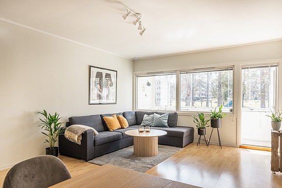 Dette er en innholdsrik, lys og praktisk 3-roms med attraktiv intern beliggenhet og gode kvaliteter. Leiligheten er praktisk utformet med stue, kjøkken, 2 soverom, bad, entré og omkledningsrom, og kan skilte med en romslig balkong på ca. 8kvm. Leiligheten er plassert i høy første etasje, og har idyllisk utsyn mot fellesområdet.