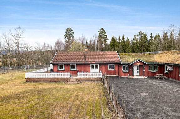 Kombinert nærings-/​boligbygg. Godt egnet som dyrehotell. Landlig men likevel sentralt.