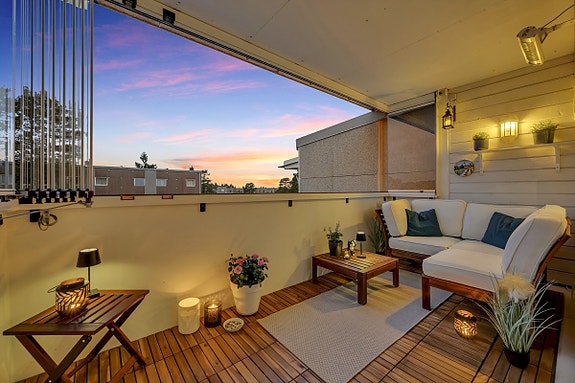 - Vestvendt, innglasset balkong på 9 kvm med fin utsikt over nærområdet.