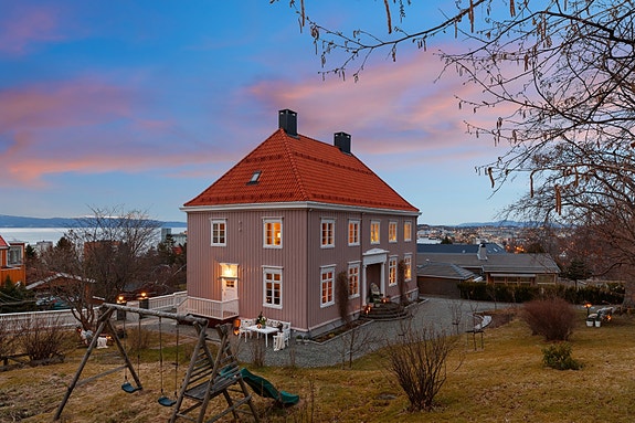 Herskapelig villa fra 1919 med velbevart stil og særpreg. Vakker hage, gode solforhold og nydelig utsikt over fjorden.