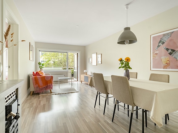 Dette er en lys og innbydende 3-roms leilighet med en skjermet, rolig og attraktiv beliggenhet i grønne omgivelser. Fra stuen kan du ta turen ut på en herlig, vestvendt balkong som er perfekt for solfylte sommerdager. Her får du store, luftige rom og mange vindusflater som gir mye lys inn i leiligheten.