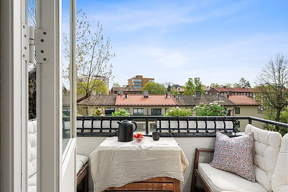 - Hyggelig sydøstvendt balkong med flott utsyn