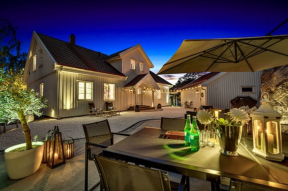 Opplev en herskapelig villa på idyllisk eiendom på stranden i Hvitsten. Denne unike boligen kombinerer gammel romantisk sjarm med topp moderne fasiliteter og energiklasse B.