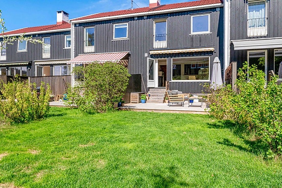 Et svært hyggelig og innholdsrikt rekkehus m/ høy standard og sydvestvendt hage m/ stor terrasseplatting og frodig beplatning.
