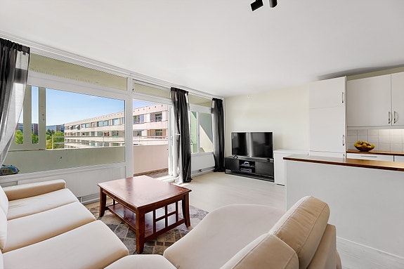 Lys og romslig 3-roms med 7.5 m² vestvendt balkong|Bad+ wc 2017|Heis|TV/nett/fyring/v.vann inkl|Nær tog, buss og senter