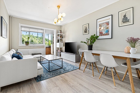 Flott 2-roms med innglasset balkong I Høy 1.etasje |Varmtvannfyring| Inkludert i felleskostnadene