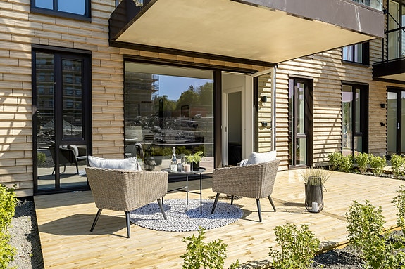Strøken 3-roms selveier fra 2024 med vestvendt terrasse á 25 kvm. Vannbåren gulvvarme. TG0 på alle punkter.