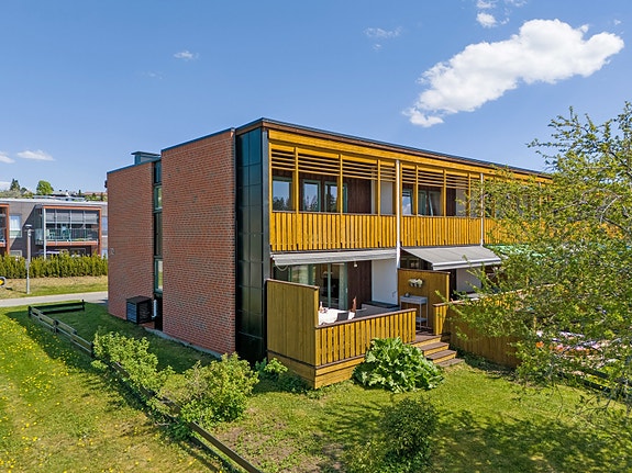 Her har du mulighet til å kjøpe et pent rekkehus med beliggenhet på enden. Boligen er bygget i 1974 og har gode familievennlige planløsninger over to plan og kjeller. Det er bl.a. gang, tre soverom, bad, toalettrom, kjøkken og en romslig stue med utgang til en solrik og sørvendt terrasse. I kjelleren er det god lagringsplass. Boligen disponerer en pent opparbeidet hage med dine solforhold.