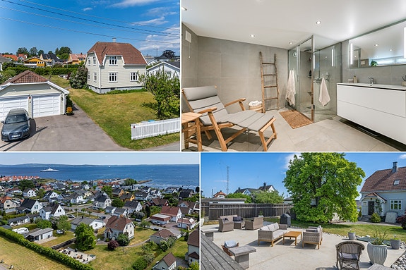 En sjønær eiendom med fantastiske uteplasser, dobbelgarasje med nye porter og en solrik tomt på over 1,3 mål. Innholder bl.a. fire soverom, flere stuer der en stue har peis, romslig kjøkken, to bad og hyggelig inngangsparti. Hele kjelleretasjen ble i 2017 renovert. Stort og deilig bad i denne kjelleretasjen som gir deg spafølelsen!