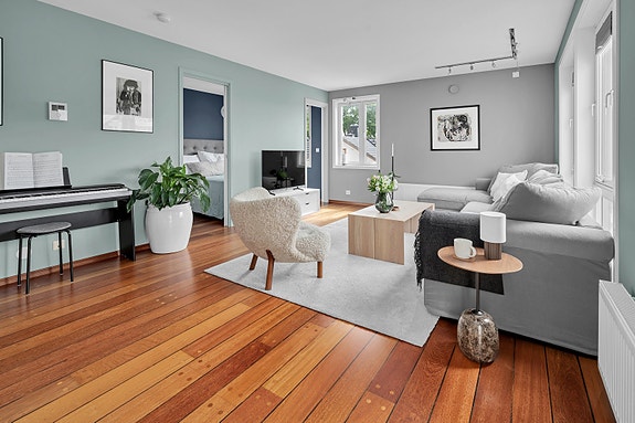 Leiligheten holder en gjennomgående god standard og har romslige oppholdsrom.