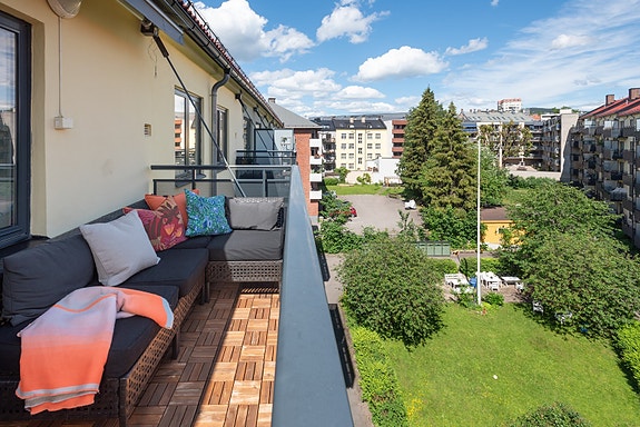 - Stor, solrik balkong på 6 kvm mot grønn bakgård