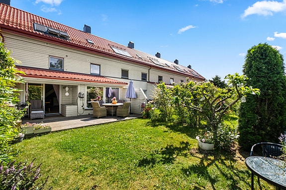 Attraktivt, utbygd (2014) rekkehus med vestvendt, solrik hage. To bad og romslig loftstue (2012). Garasje. IN-lån.