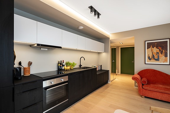 sentrum kan by på. Bygget ble oppført i 2021 og har en gjennomtenkt planløsning. Det er bl.a stue og kjøkken, soverom og sovealkove. Det er stilfullt bad med mørke moderne fliser. Nybygg og gårdsrom tegnet av anerkjent lokalt arkitektkontor Anderssen + Fremming, som også står bak eller har bidratt til en rekke boligprosjekter og kjente bygninger i og rundt Hamar.