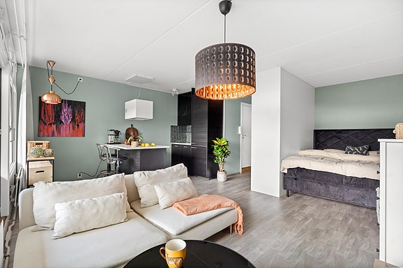 Dette er en svært arealeffektiv og lys 1-roms med praktisk planløsning. Leiligheten ligger fint til i et av Norges største borettslag, med nærhet til kollektivtransport, grøntarealer, butikker mm.