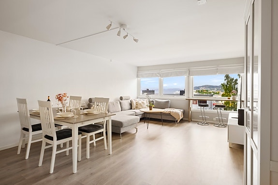 - God planløsning, fin utsikt og kjøkken med god skap- og benkeplass