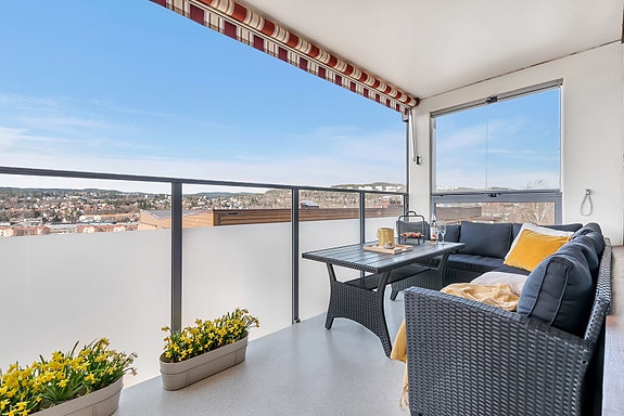 Gjennomgående og romslig 4-roms | Toppleilighet med to balkonger m/fantastisk lys- og solforhold | Garasje & elbil lader