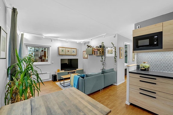 Her får du en entré, åpen stuekjøkken løsning, et lekkert kjøkken oppgradert i 2021, flislagt bad med gulvvarme, vestvendt balkong på ca. 5 kvm og et romslig soverom med garderobeskap. Videre kan boligen skilte med parkett i alle rom.