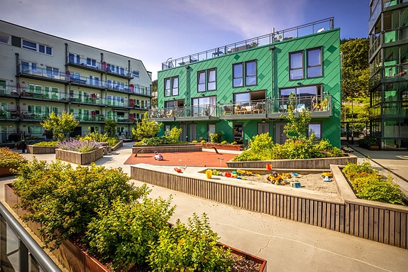 Et nydelig townhouse på toppen av den gamle fabrikken i Damsgårdssundet, med kort vei til alt du trenger av fasiliteter og servicetilbud. Like utenfor finner du Fløttmannsplassen med dagligvarebutikk, kafeer og restauranter. Denne romslige boligen går over 4 plan, ble ferdigstillt så sent som i 2019 og har både balkong og privat takterrasse. Boligen har god standard og gode løsninger når det gjelder innredning, interiør og utstyr. Egen hybel medfølger med utleiekontrakt på 10.600,- pr mnd.