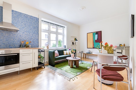 Fantastisk lys og sjarmerende 2-roms m/arealeffektiv planløsning | Vendt mot enveiskjørt gate | Peis | Idyllisk bakgård