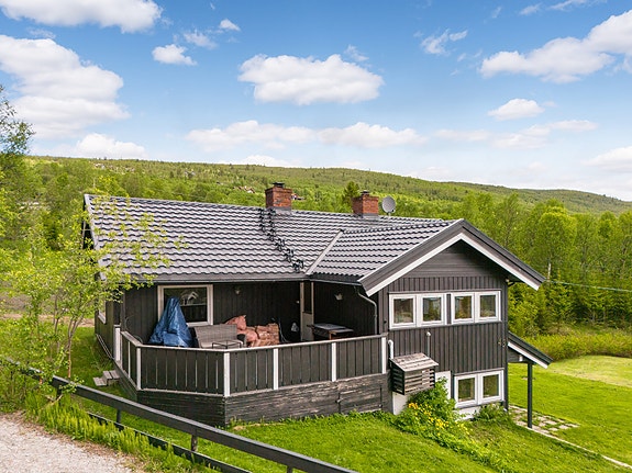 Eiendommen ligger fint til med morgensol og har fin utsikt østover. Boligen er en eldre tømmerbygning fra ca. 1940 som er tilbygd i 1946 og 1984. Ny taktekking i 2023.