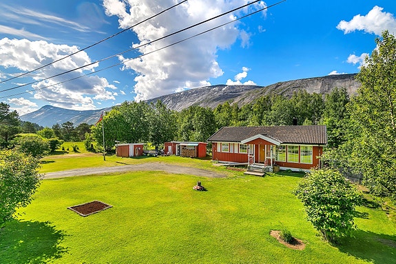 Denne eneboligen ligger idyllisk til på Elvegård i Skjomen. Boligen inneholder 3 soverom, stue, kjøkken og bad. I tillegg er det ett uthus og ett brønnhus på eiendommen.