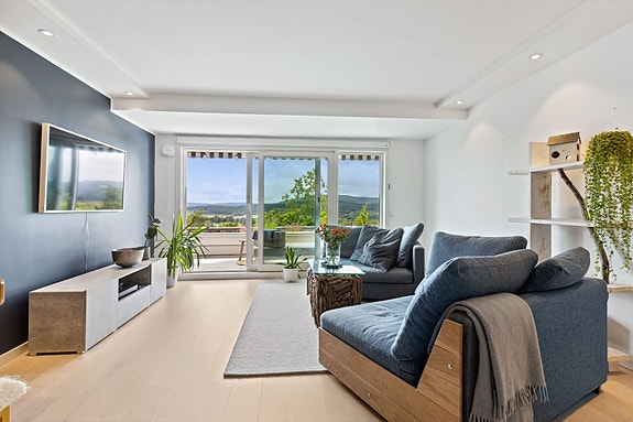 Stor og pen 2-roms med vestvendt terrasse, fantastisk utsikt og garasjeplass - Tilgjengelig og rolig område nær marka