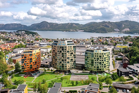 Den ligger i 5. etasje, har luftig og fin utsikt samt store mengder med lys.