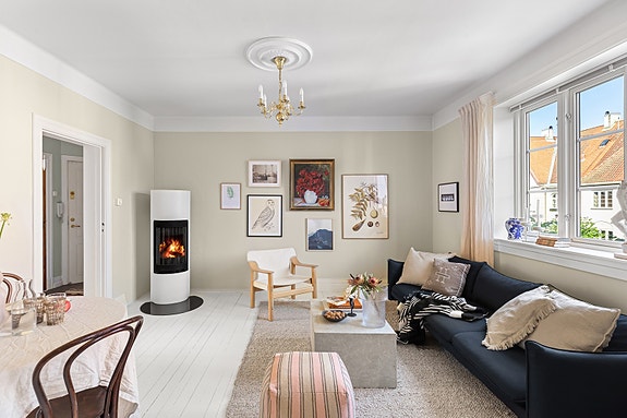 - Originale tregulv, rosetter, god takhøyde, samt store vindusflater.