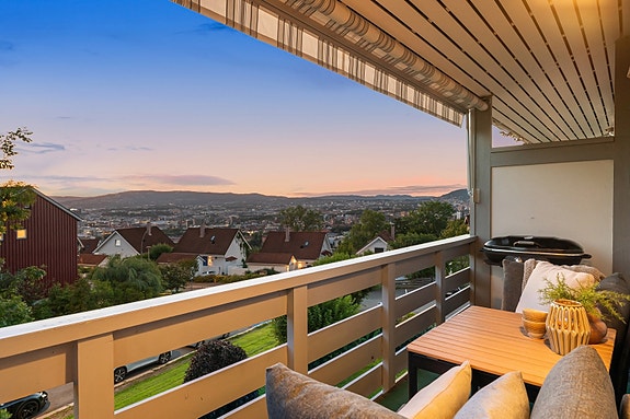 Stilren 3-roms med solrik vestvendt balkong og flott utsikt | Egen p-plass | Rolig nærmiljø