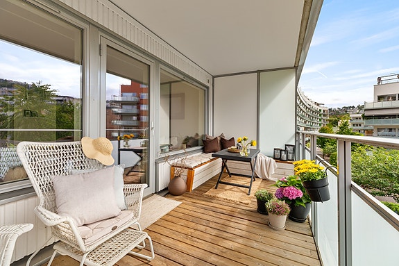 Lys 2-roms m/ stor solrik balkong på 14,3 kvm. Heis. Felles takterrasse. IN-ordning. V.v, fyring, tv/fibernett. inkl.