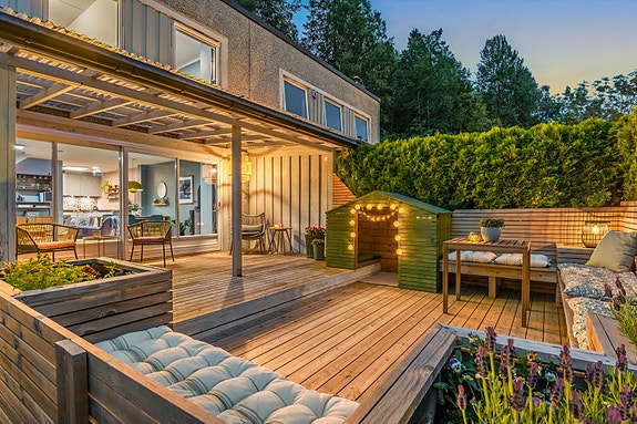 Innholdsrikt og moderne oppusset rekkehus over to plan m/store uteplasser. 4 soverom. Garasjeplass. Idyllisk beliggenhet