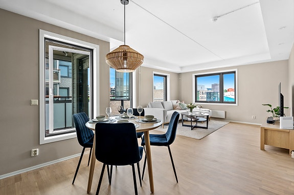 - Lys og luftig leilighet med store vindusflater og tidsriktige fargevalg