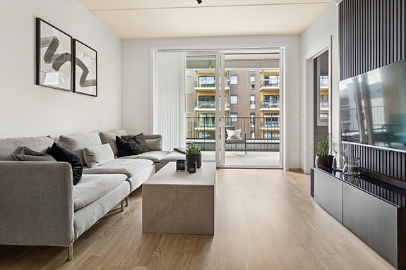 Strøken 2-roms leilighet i 3. etg. fra 2023 med attraktiv beliggenhet - Vestvendt balkong på 13m² - TG0 - IN-ordning