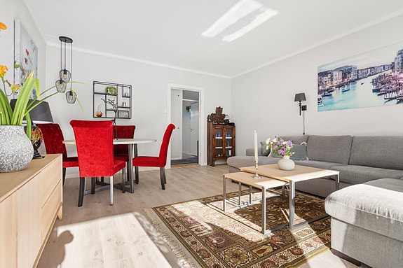 Lys 3-roms med solrik, usjenert balkong på 10 kvm | God arealutnyttelse | Varmtv./fyring inkl | Barnevennlig!