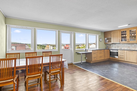 Eiendommen har flott utsikt over Topdalsfjorden fra 3 etg, og solen har du fra tidlig morgen til sene kvelden.