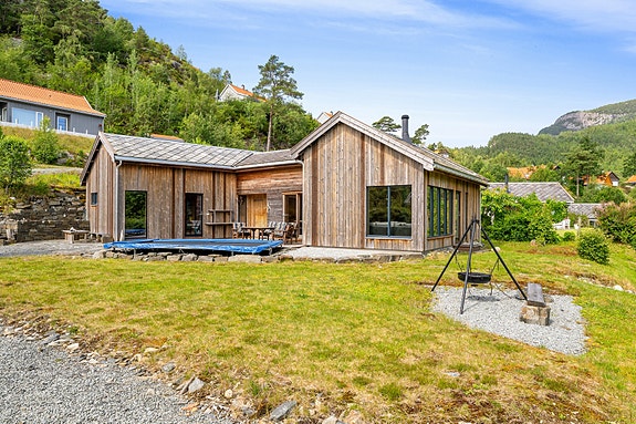 På jakt etter drømmehytta? Sandangervågen 106 er en stilig hytte fra 2013, med funksjonell utforming og innholdsrik planløsning på en flate. Omgivelsene er idylliske og fredfulle, rett ved sjøen, brygger, badeplasser og flotte turmuligheter i vakker natur. Etter turen nytes livet utendørs til fulle i en stor hage og på to herlige terrasser med nydelig utsikt over det naturskjønne landskapet. Det er enkel adkomst via bilvei, og bilen parkeres i en innkjørsel.