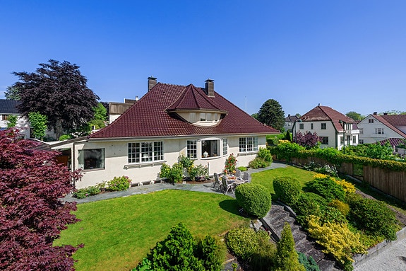 Dette er en stor, fantastisk enebolig fra 1918, fordelt på tre etasjer, med flott, arkitektonisk utforming. Boligen er betydelig påkostet fra 2000 og frem til i dag, hvor det har vært fokus på bruk av materialer av god kvalitet. Uttrykket er moderne, men med husets unike egenheter godt ivaretatt. Med god romstørrelse og fantastiske lysforhold får man et herlig atmosfære, som forsterkes ytterligere av en takhøyde målt til 2,9 meter i første og andre etasje.