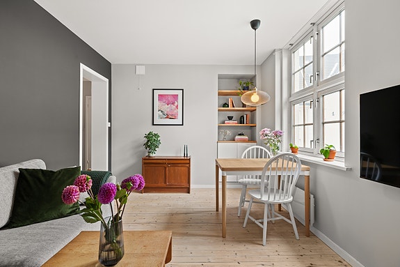 Svært tiltalende 2-roms leilighet i en attraktiv, arkitekttegnet bygård | Rålekkert kjøkken fra 2018 | Stort utvidet bad