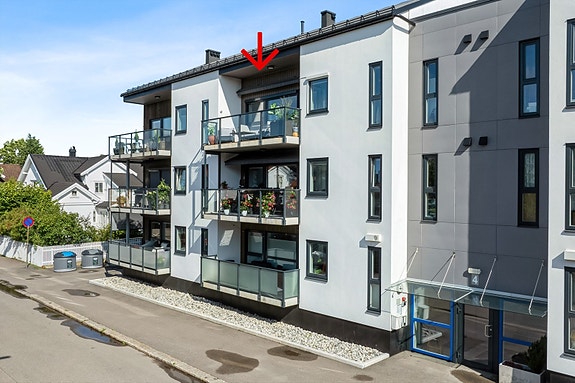 Bo trygt og lettvint i nyere 4-roms leilighet i Karolines Hage, i toppetasjen m/heis og garasje.