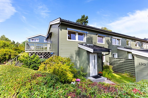 Velkommen til Sloreåsen 13A, enderekkehus over to plan med flott beliggenhet og utsikt. Boligen har behov for modernisering og fremstår med et stort potensial. Utgang til solrik terrasse på 47 m² som strekker seg langs to sider av boligen mot vest og nord. Inkludert i fellesutgiftene er oppvarming/varmtvann samt TV og internett. Boligen ligger i et meget barnevennlig på Sloreåsen med kort vei til offentlig kommunikasjon.