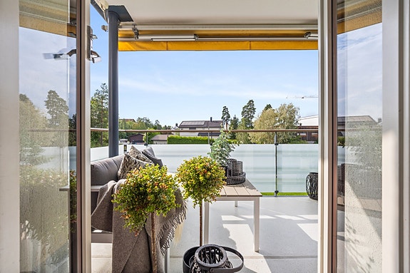 Fra stuen er det adkomst til en solrik balkong. Det er også en hyggelig liten balkong med adkomst fra soverom 3.