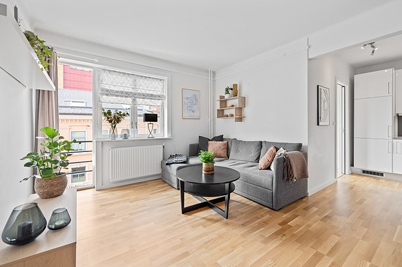 Leiligheten holder en god standard og inneholder åpen entré, åpen stue- / kjøkkenløsning med en stilren kjøkkeninnredning, arealeffektivt baderom med varmekabler og opplegg for vaskemaskin samt soverom med plass til garderobe. Solrik felles takterrasse hvor du kan nyte fine sommerdager og god utsikt over Oslo. I tillegg er det også en felles brannbalkong. I tillegg disponerer boligen en loftsbod på ca 2,5 kvm samt felles sykkelparkering og gratis felles vaskeri.
