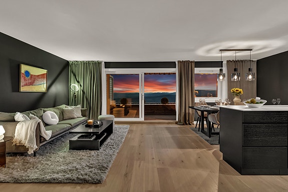 Rålekker, gjennomgående 4-roms toppleilighet med fantastisk utsikt. Sydvestvendt terrasse. Garasje. IN-ordning. 2 bad!