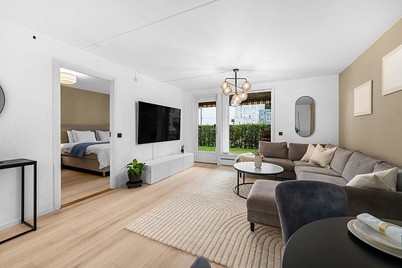 Dette er en romslig 4-roms selveier leilighet beliggende i et rolig boligområde med kort vei til sentrumsfasiliteter. Leiligheten ligger fint og skjermet til - omkranset av gressplen, busker og beplantning. Med en åpen og optimal planløsning, god takhøyde og store vindusflater oppleves leiligheten lys og luftig.